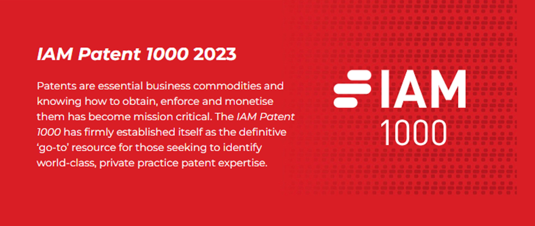 《IAM 全球专利1000强》(IAM PATENT 1000)专注于在全球范围内推荐一流的专利事务所与专利专家,为全球专利从业人员提供了权威的价值参考。其调研人员驻香港及英国伦敦,每年历时五个月针对全球数十个国家和地区的1800余位律师、专利代理师和公司法务开展调研,涉及专利申请、专利许可、专利商业化以及专利诉讼等领域。