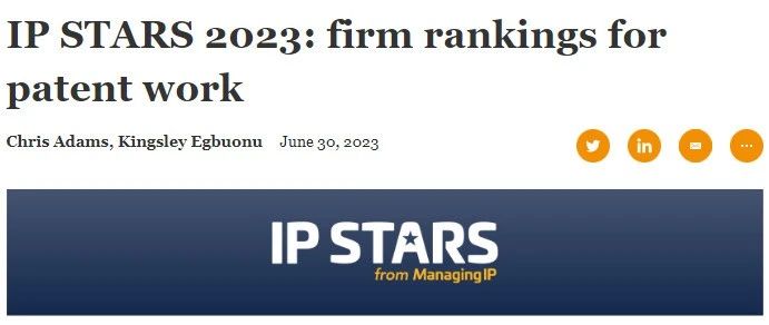IP STARS《知识产权之星》 是全球领先知识产权领域的综合性指南,为企业及个人寻找富有经验的知产法律从业者提供了重要参考依据。经过广泛调研,本年度专利榜单覆盖超过60个司法管辖区、商标榜单覆盖超过50个司法管辖区。
