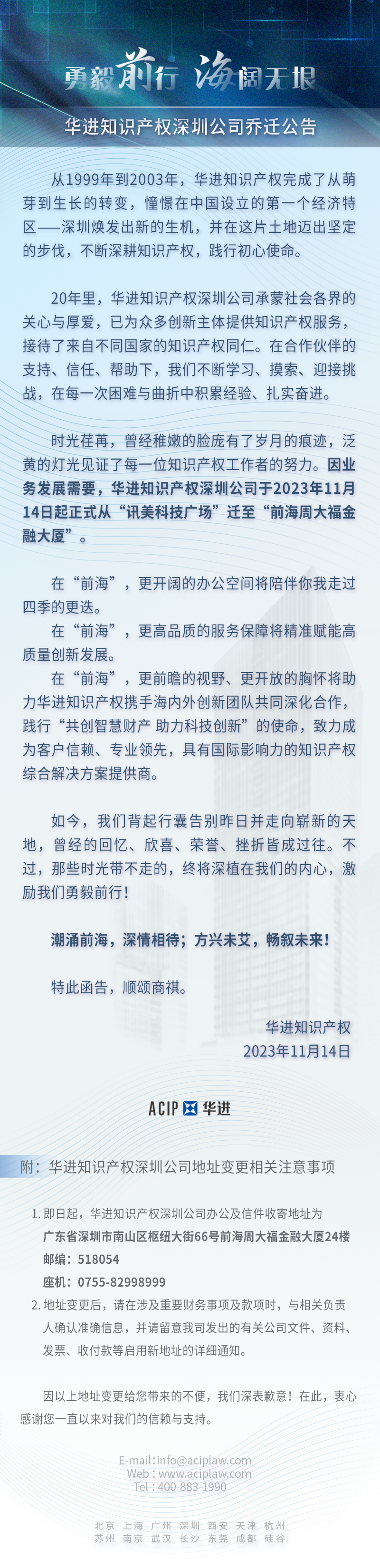 勇毅前行 海阔无垠——华进深圳乔迁公告