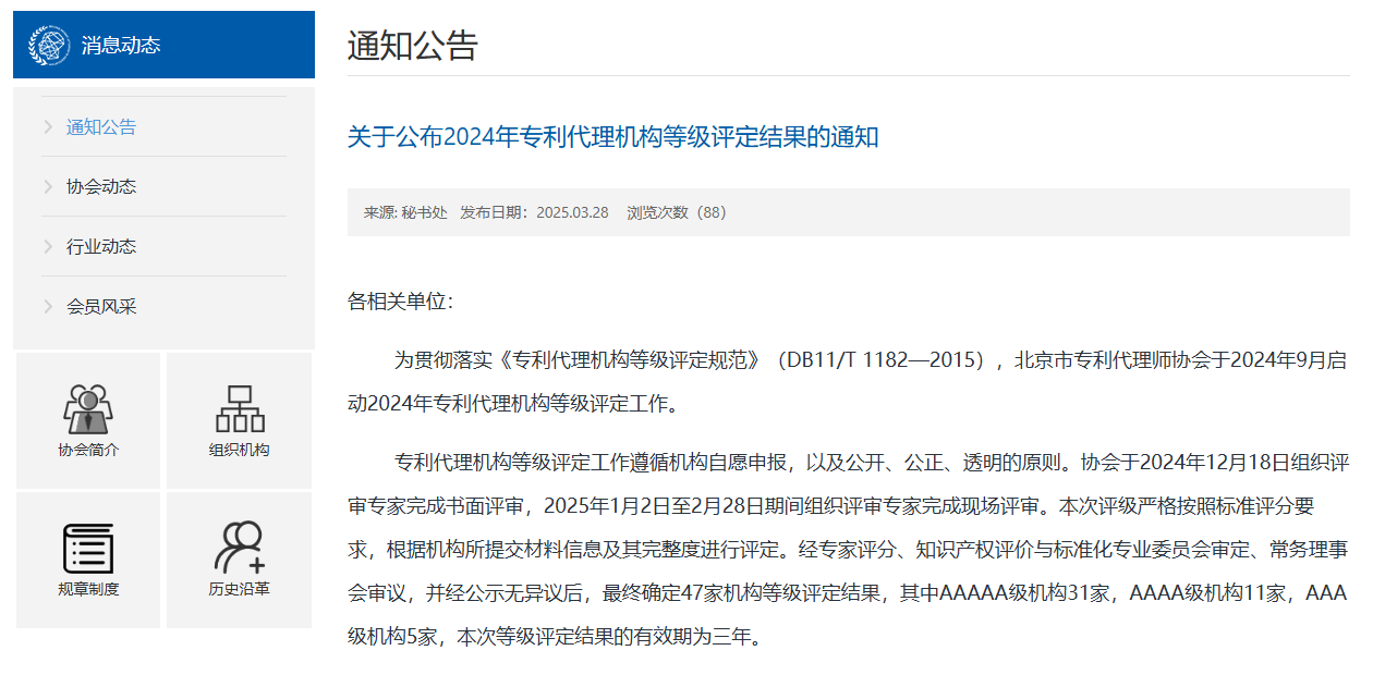 近日,北京市专利代理师协会正式发布2024年专利代理机构等级评定结果。北京华进京联知识产权代理有限公司经严格评审程序,获评AAAAA级专利代理机构。这是继2021年首次获得5A评级后,华进北京公司再度获得最高等级认定。