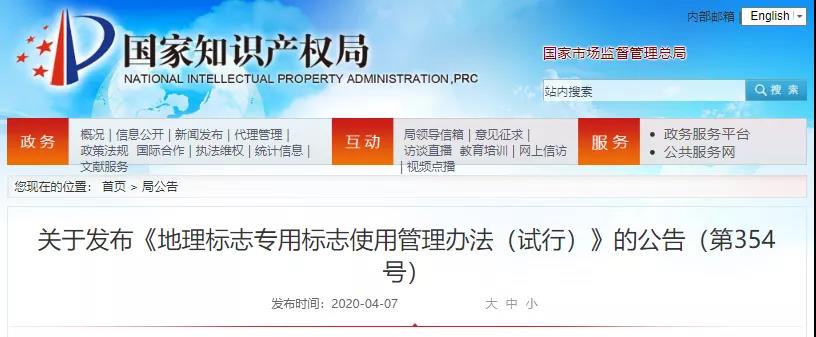 国知局:《地理标志专用标志使用管理办法(试行)》来了!