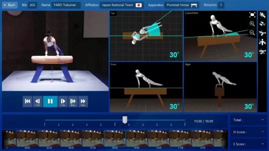此前,体操比赛的评判主要取决于裁判视力,而新的裁判支持系统则利用人工智能(AI)和3D传感器来捕获体操运动员的每一个动作,并对数值数据进行分析。该系统通过各个角度的测量来产生运动员已执行的体操动作的3D图像。通过捕获体操运动员的骨骼位置并且记录运动的角度和速度,将产生的3D图像进行存储并且参考学习数据,从而以更精确、客观和公正的方式对体操运动员的表现进行评分。