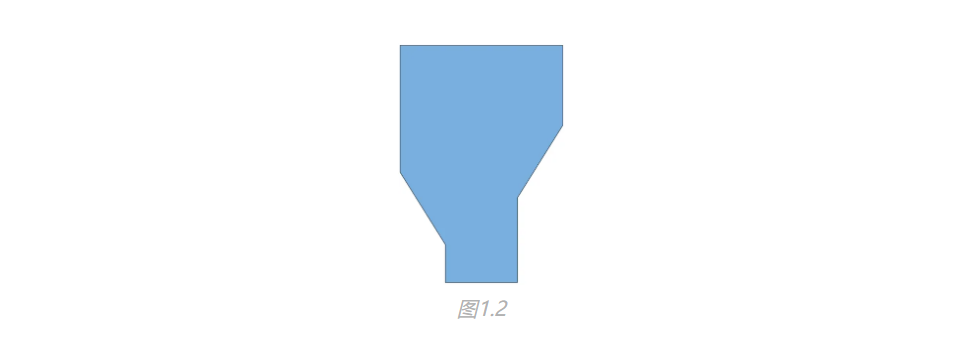 发明人将落料斗的结构改进为如下图1.2所示的结构(记作落料斗结构2)。在从落料斗结构1到落料斗结构2的改进中,可理解为对落料斗锥面部分进行了“分割”式的优化。落料斗结构2的锥面角度更大,相当于把落料斗结构1相对平缓的锥面在角度维度上进行了分割处理,使其更具变化性。这种变化让物料在下落过程中所受的约束变小,重力沿锥面方向促使物料下滑的分力增大,从而加快物料向出料口的流动速度,减少物料在斗内的停留与堆积,提高了落料效率。