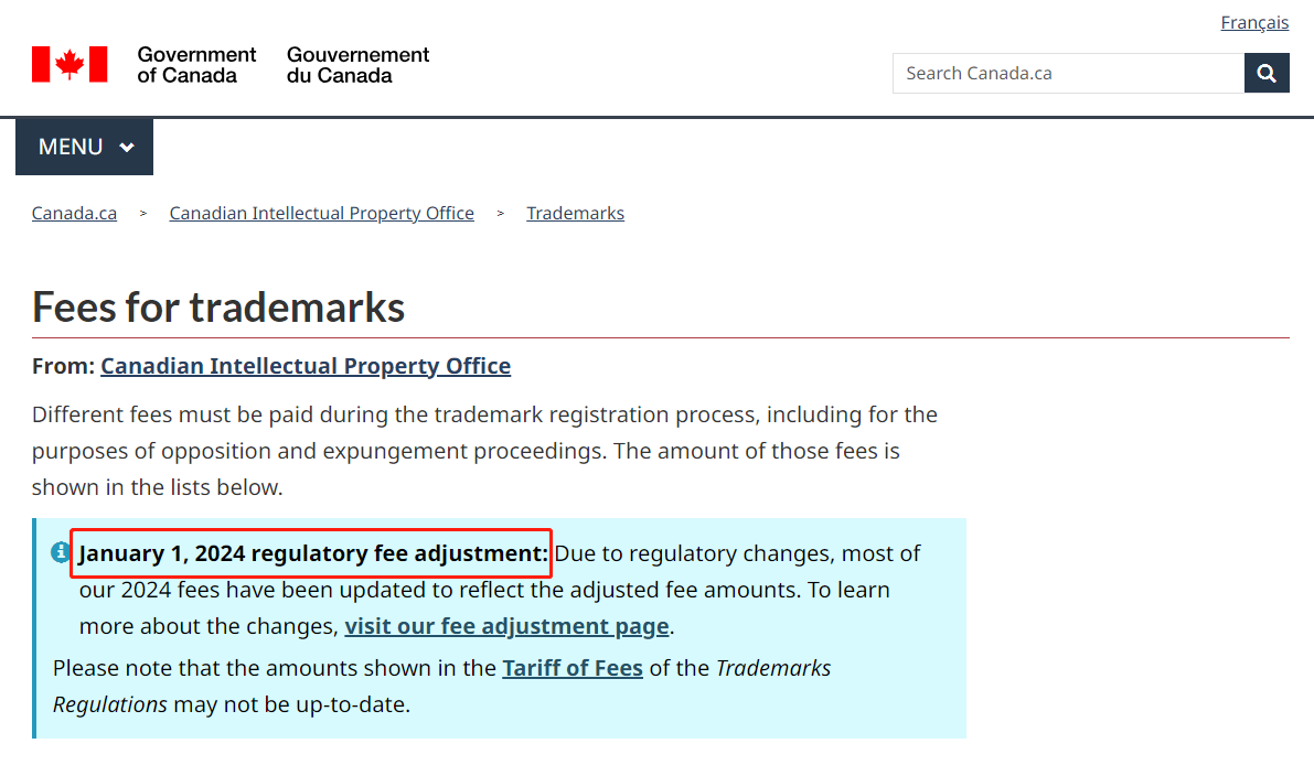 例如,如果您提交了加拿大商标注册申请,但由于未支付官费而无法批准申请日期,则您需要支付的金额将取决于商标局收到全部官费的日期。如果在2024年1月1日及之后收到付款,您将需要支付最新调整后的官费。