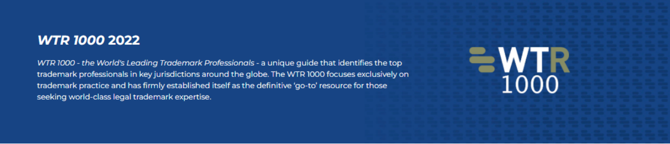 Recently, World Trademark Review(WTR), a famous international media in the field of intellectual property, has published World Trademark Review 1000 for Year 2022, including outstanding trademark agencies and individuals in the global trademark practice based on a combination of factors including professional performance, quality of service, market share and peer and clients’ recommendation,.