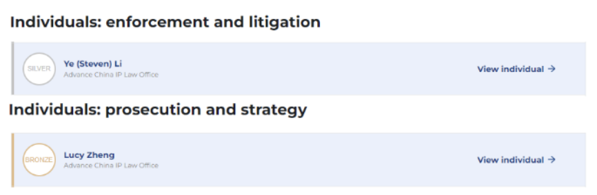 Steven Li, Managing Partner of ACIP Law Firm, and Lucy Zheng, Senior Partner of ACIP Law Firm, have been honored as WTR 1000 Outstanding Individuals for consecutive years for their years of experience and high quality service.
